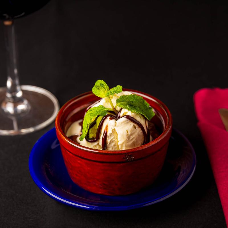 Topped with melted chocolate & caramel. This legendary version of cheesecake was created by a "bar chef" in Spain in the late 1980s. Cooked at very high heat and very quickly - this take on the classic - leaves the top of the cheesecake dark and caramelized - while the inside is almost 'custard or mousse-like', leaving you wanting more.